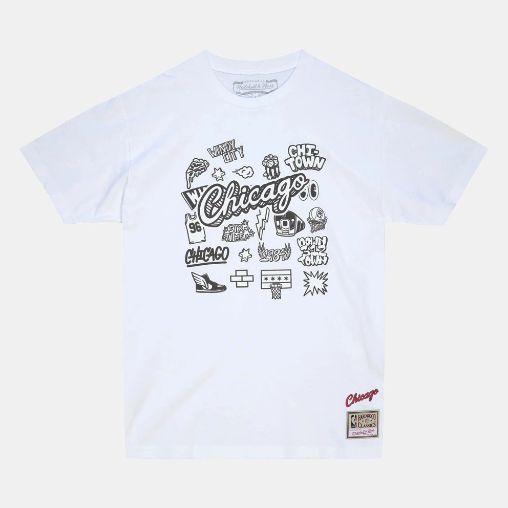 Mitchell & Ness Doodle Chicago Bulls Ανδρικό T-Shirt WHITE