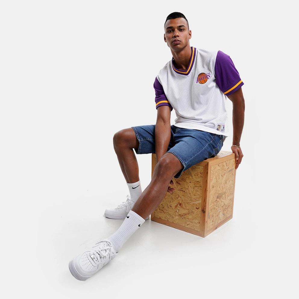 Mitchell & Ness Fashion Mesh V-Neck Los Angeles Lakers Ανδρικό T-shirt WHITE